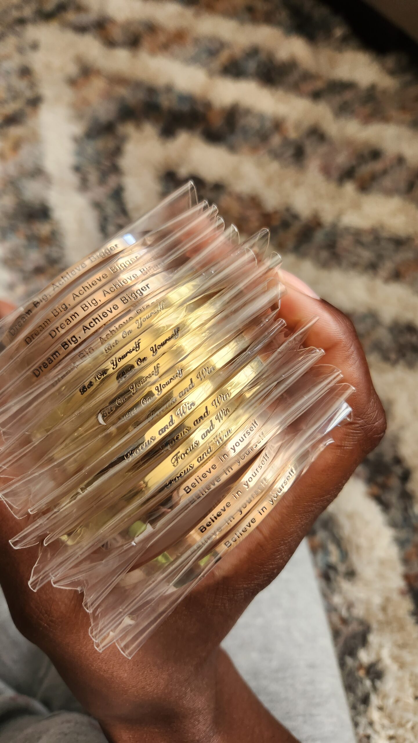 Each bracelet features premium plating (like luxurious rose gold where applicable), adjustable sizing for comfortable all-day wear, lightweight construction, and engraved affirmations that hit hard and stay with you. Hypoallergenic and built to last, they’re perfect for stacking on one wrist or mixing across both for layered motivation.